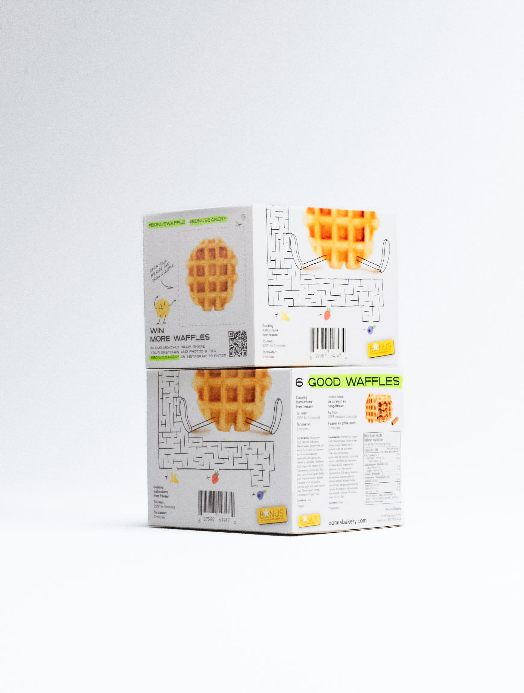 Macro waffle photography, hand drawn characters, a maze to explore, and a contest to enter.